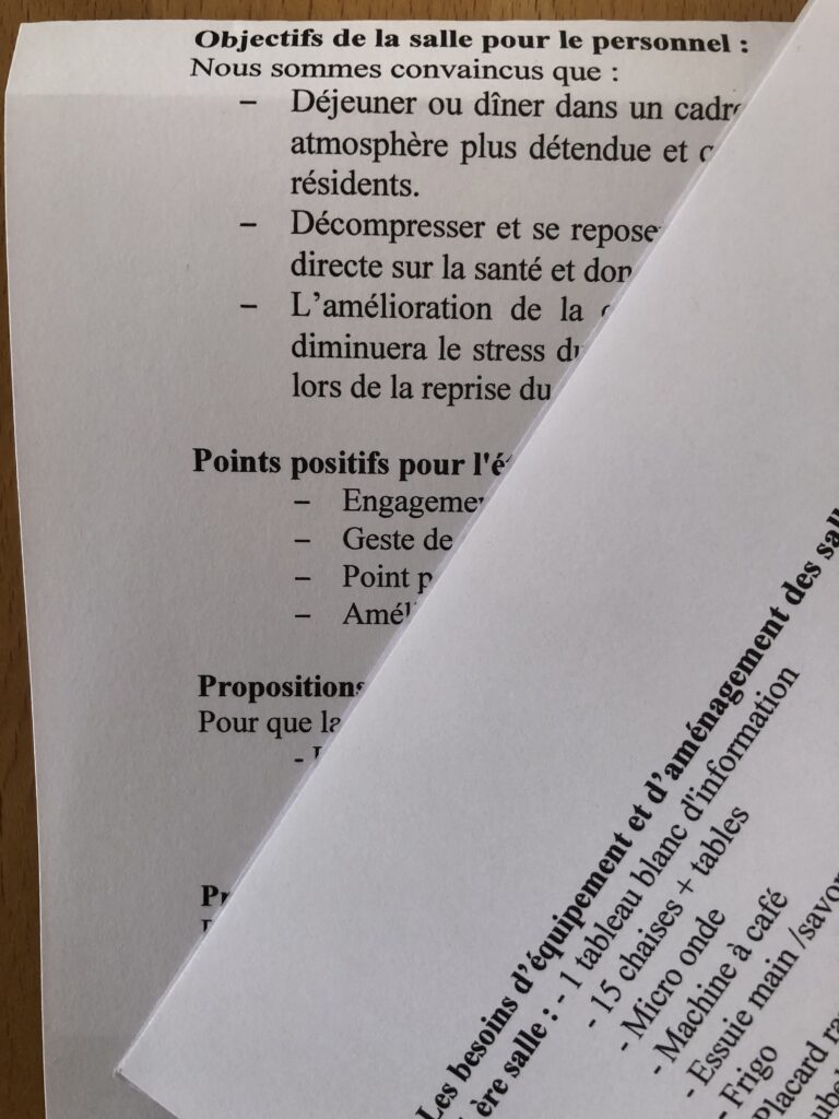 Au sein de la MAS, le cadre existant n’offrait pas des conditions adaptées pour faire des temps de pause du personnel de véritables moments de détente, d’échanges et de convivialité.